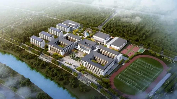 項目介紹:周市高級中學昆山市政府重點實事工程。項目位於周市鎮超英西路西側、華楊南路東側、新塘河北側,項目總投資6億元,占地114.7畝,建築麵積8.5萬平方米。學校采取多軌並行的教學模式,預計總共設立五十個教學班級,辦學規模較大。整個校園設計充分融入現代綠色建築及海綿城市要求。